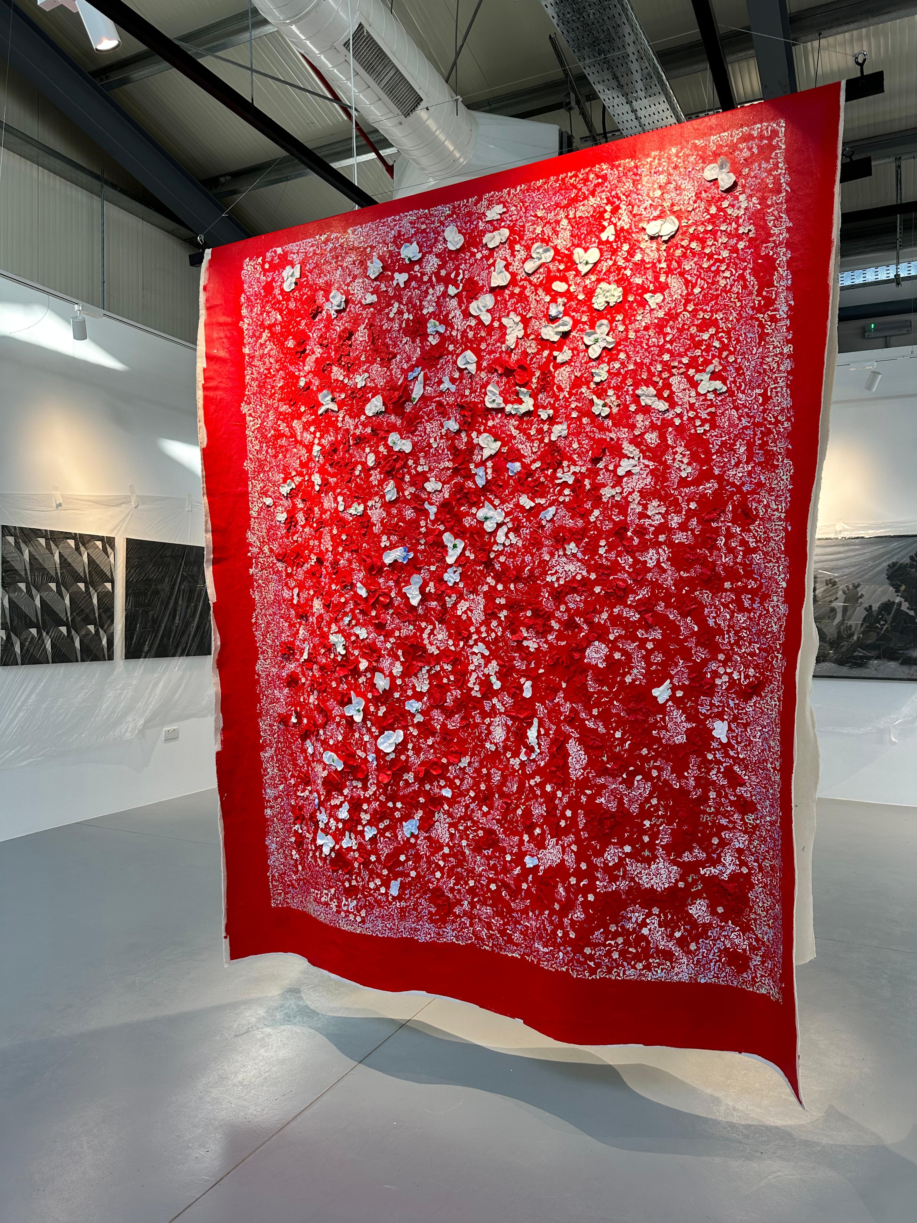 Lana Khayat’s participation in the Diriyah Contemporary Art Biennale with Hafez Gallery marked a pivotal moment in her practice. Set within one of the region’s most vital contemporary art platforms, this exhibition offered space for her work to resonate in dialogue with cultural memory, material heritage, and the emotional landscape of place. The works presented reflected years of exploration — of nature, silence, and the quiet force of stitching as a form of resistance and remembrance.